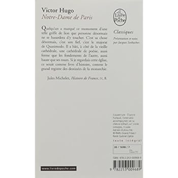 Sorti du libre élan mystique, le gothique, comme on l'a dit sans le comprendre, est le genre libre. Je dis libre, et non arbitraire. S'il s'en fût tenu au même type, s'il fût resté assujetti par l'harmonie géométrique, il eût péri de langueur. [...] Comment compter nos belles églises au xiiie siècle ? Je voulais du moins parler de Notre-Dame de Paris. Mais quelqu'un a marqué ce monument d'une telle griffe de lion, que personne désormais ne se hasardera d'y toucher. C'est sa chose désormais, c'est son fief, c'est le majorat de Quasimodo. Il a bâti, à côté de la vieille cathédrale, une cathédrale de poésie, aussi ferme que les fondements de l'autre, aussi haute que ses tours. Si je regardais cette église, ce serait comme livre d'histoire, comme le grand registre des destinées de la monarchie. [...] La grande et lourde église, toute fleurdelysée, appartient à l'histoire plus qu'à la religion. Elle a peu d'élan, peu de ce mouvement d'ascension si frappant dans les églises de Strasbourg et de Cologne. Les bandes longitudinales qui coupent Notre-Dame de Paris arrêtent l'élan ; ce sont plutôt les lignes d'un livre. Cela raconte au lieu de prier. [...] Notre-Dame de Paris est l'église de la monarchie ; Notre-Dame de Reims, celle du sacre.Jules Michelet, Histoire de France, iv, 8, « Eclaircissements : la Passion comme principe d'art au Moyen Age » (1833).Présentation et notes par Jacques Seebacher.